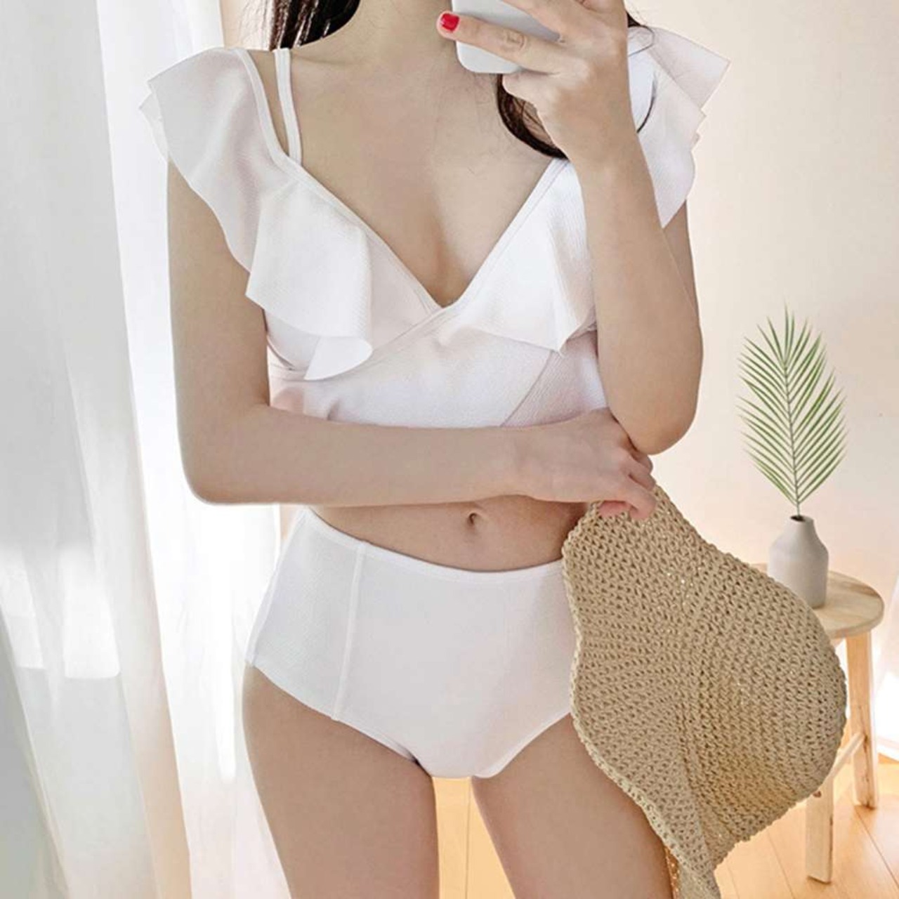 フリル 水着 レディース 上下セット 体型カバー ビキニ セクシー 無地