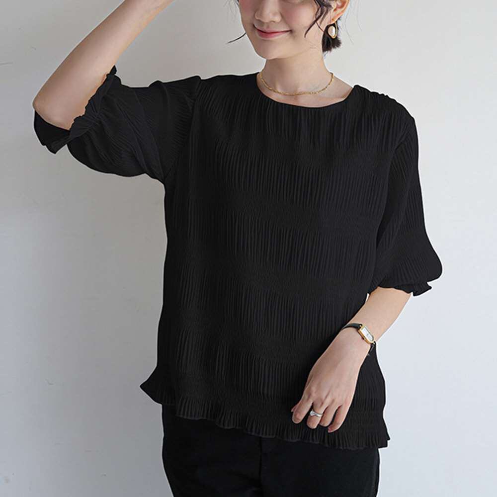 軽く涼しげな生地を使用し、着心地が快適な5分袖ブラウスです