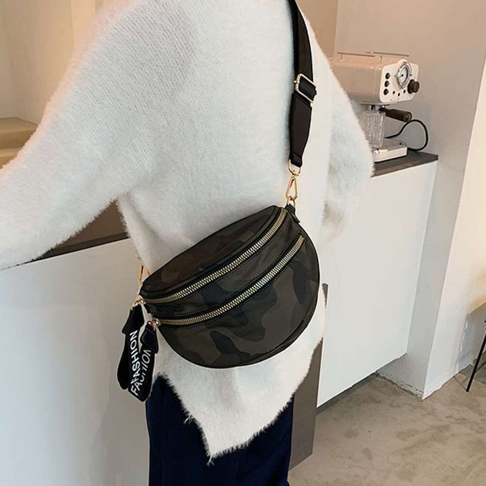 長さ調整可能、取り外し可能のショルダーストラップ付きのダブルファスナーボディバッグ