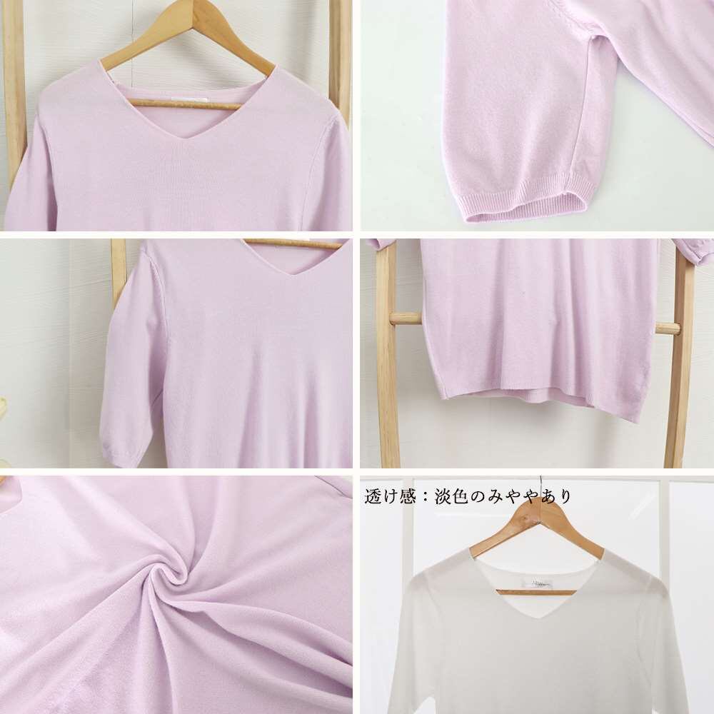 五分袖で、薄型なので、春夏秋の季節にには欠かせないニットトップス