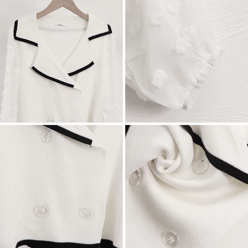キーワード:袖チュールニット スキッパーブラウス ショート丈トップス