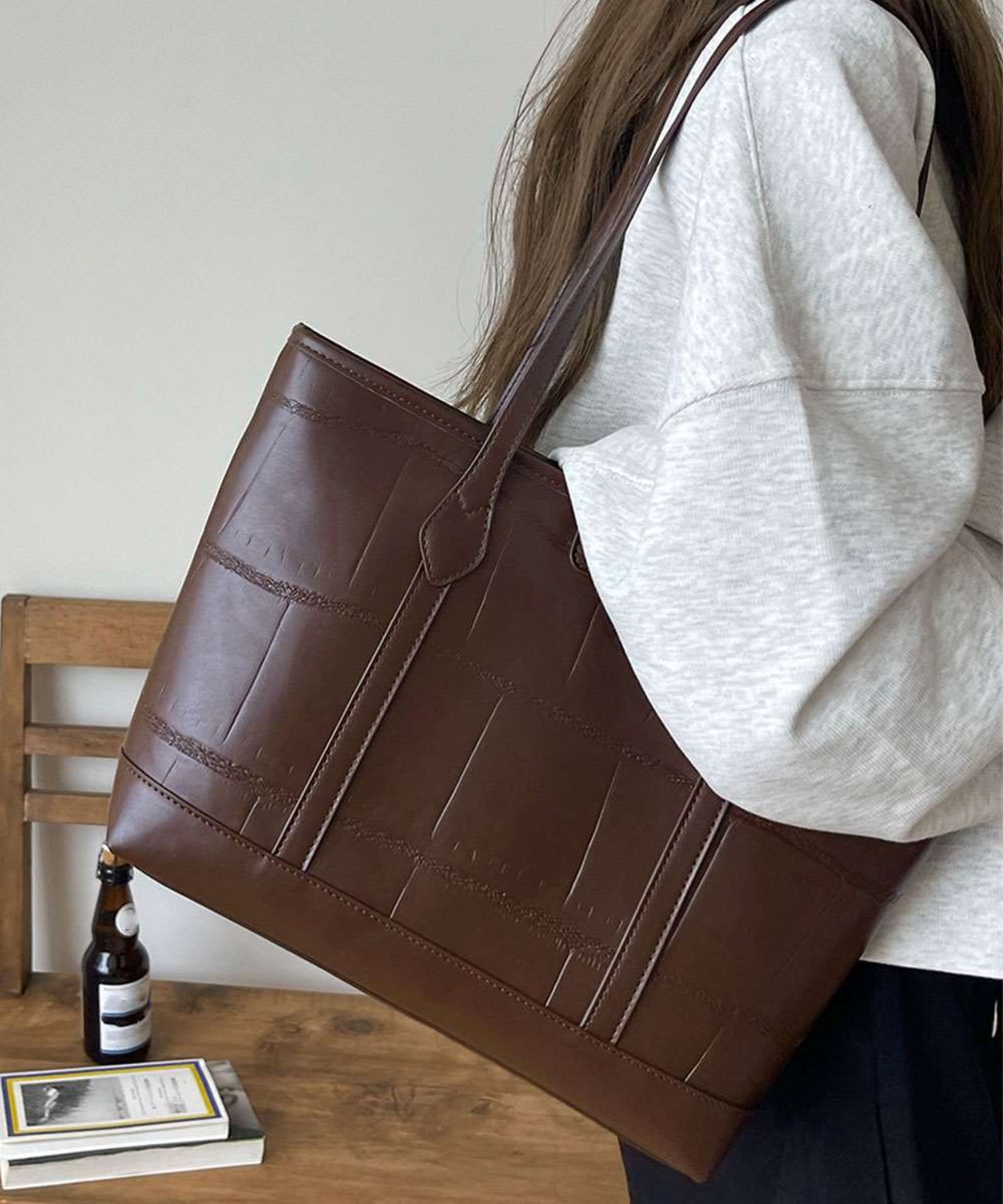 ZIP付き PU トートバッグ 大容量 かばん