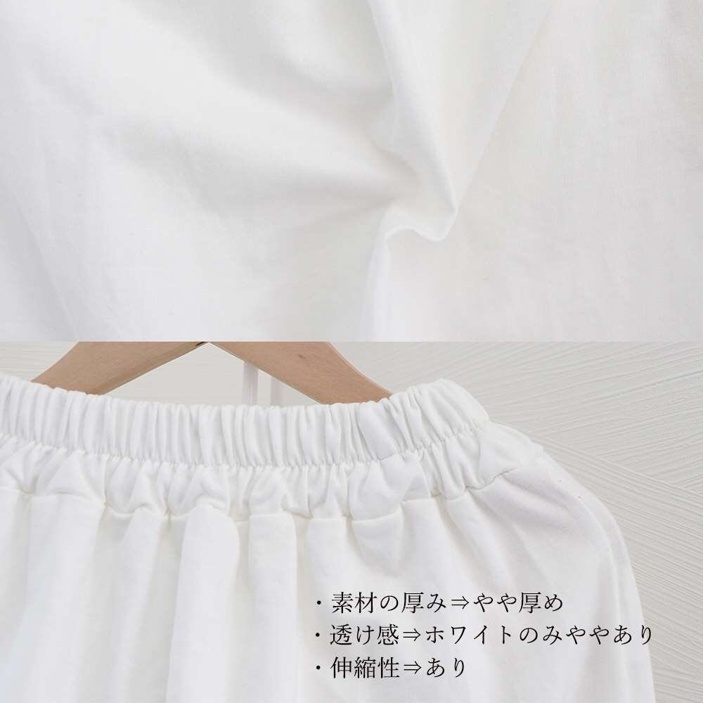 ウエストはゴム仕様になっているのでトップスをインしやすく、楽に着用していただけます。