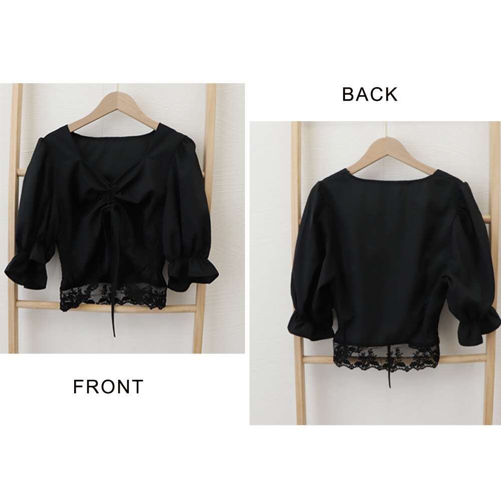 キーワード:白シャツ大人可愛い 肌見せ半袖セクシー ギャザー服透け感