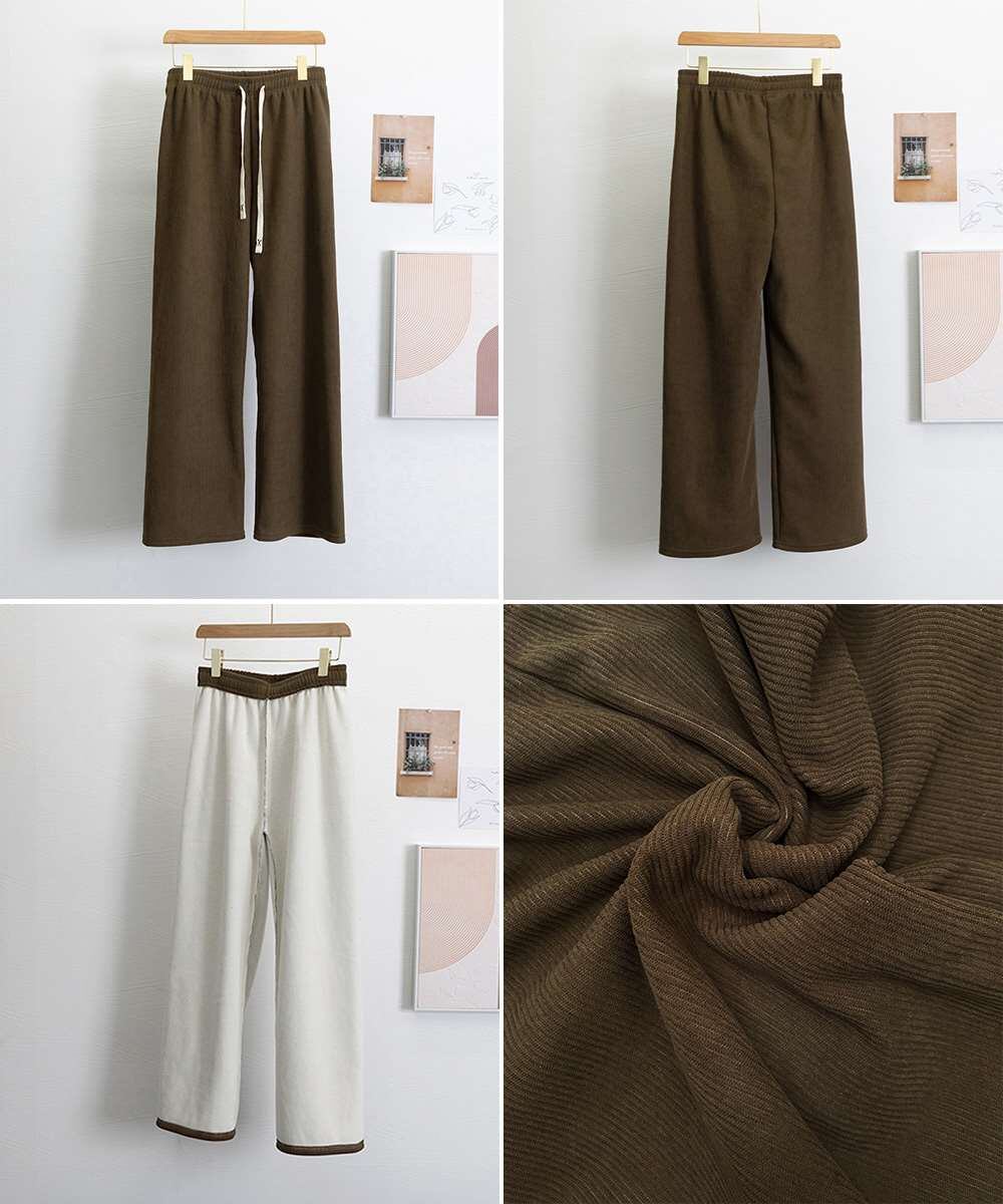 裏起毛の暖かいコーデュロイのワイドパンツ。