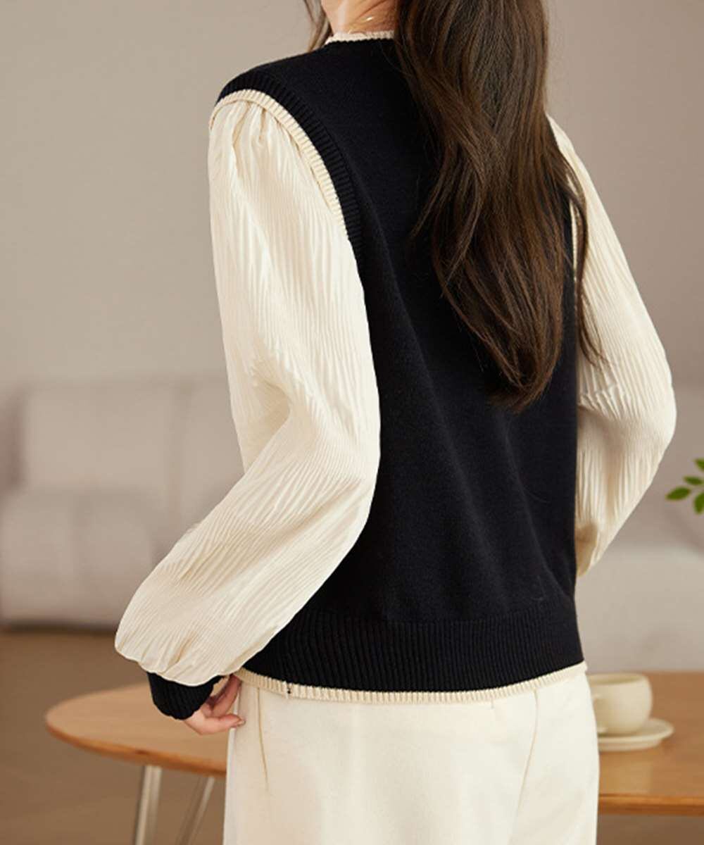 キーワード:ドッキングブラウス 重ね着風ニット きれいめトップス