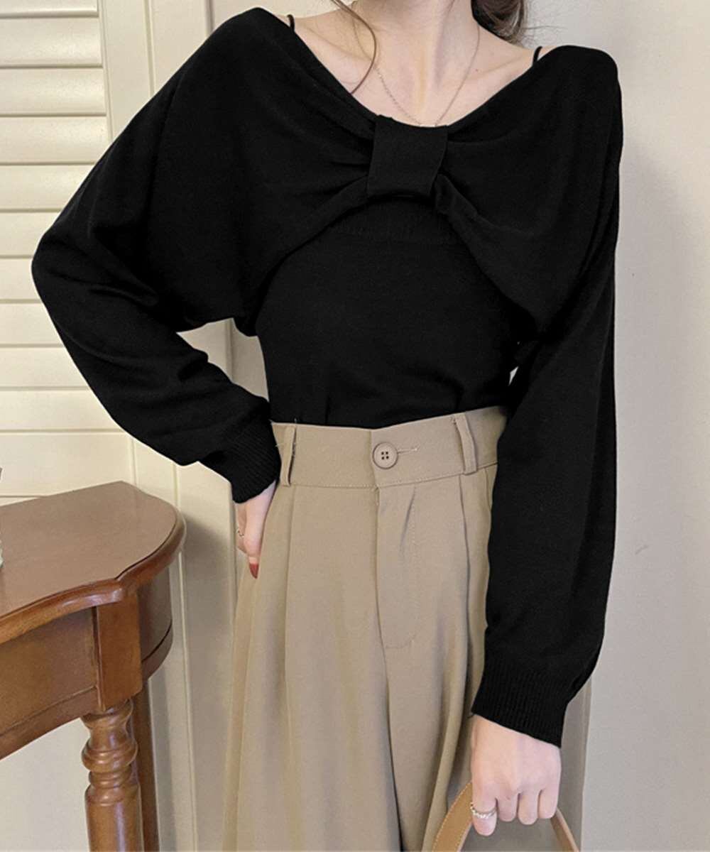 キーワード:大人可愛いニット 無地キャミソール 着やせセットアップ