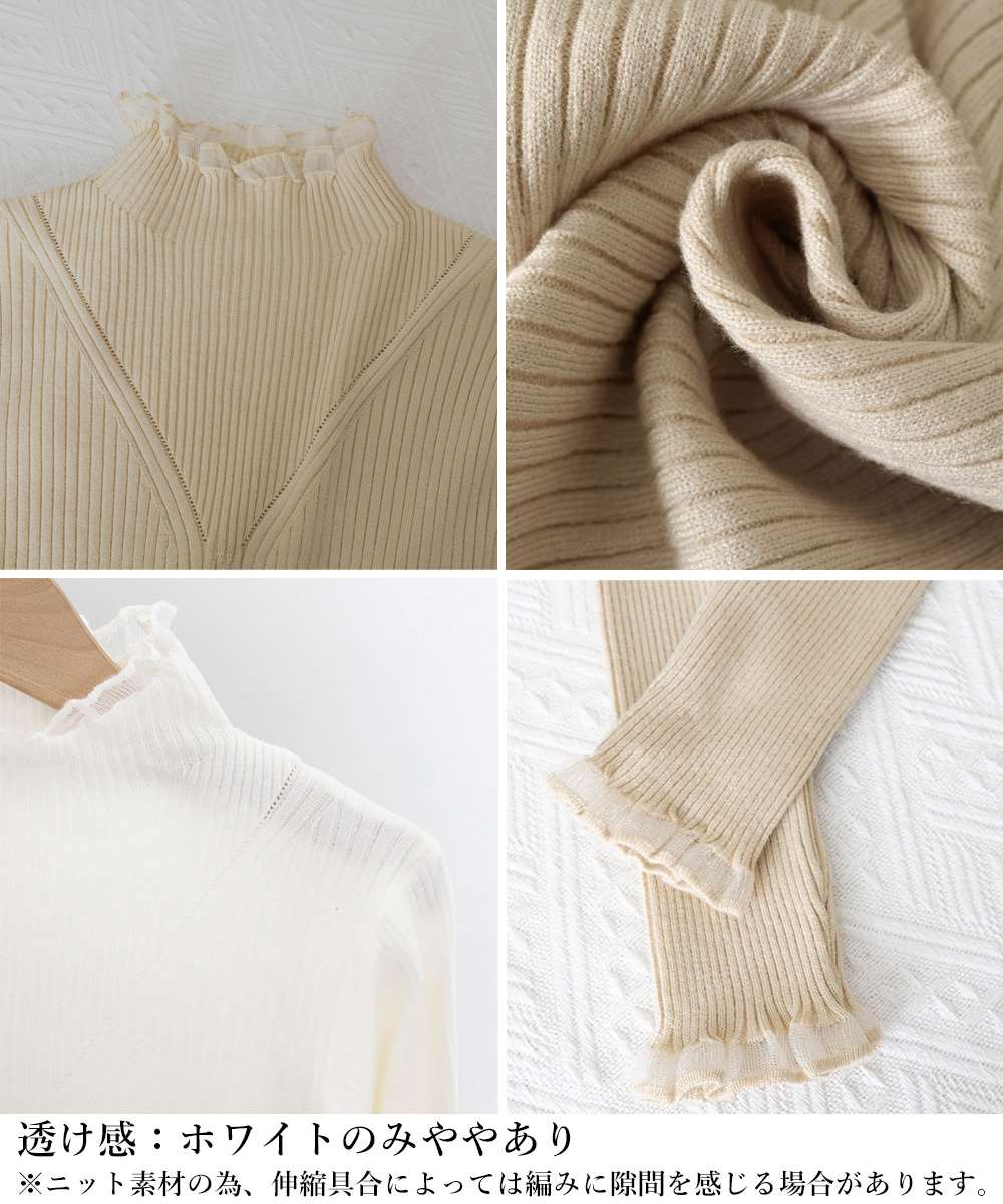 キーワード:着回しニットソー黒 フリルネックニット 長袖ニットインナー