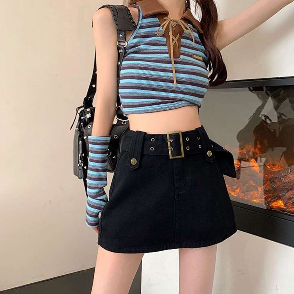 これからの季節はコンパクトなカットソーやタンクトップ、キャミソールを合わせてカジュアルに着こなすとトレンドコーデに◎