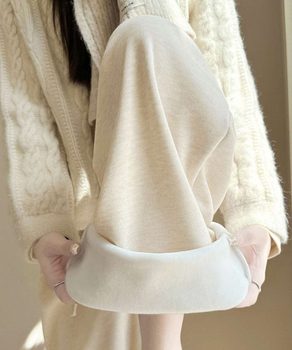 温かみのある裏起毛素材を使用した、リラックス感あふれるワイドパンツ。
