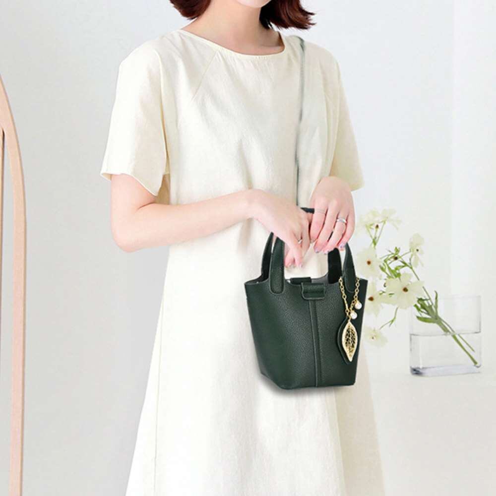 キレイめからカジュアルまで合わせやすいバケットデザインのショルダーバッグ