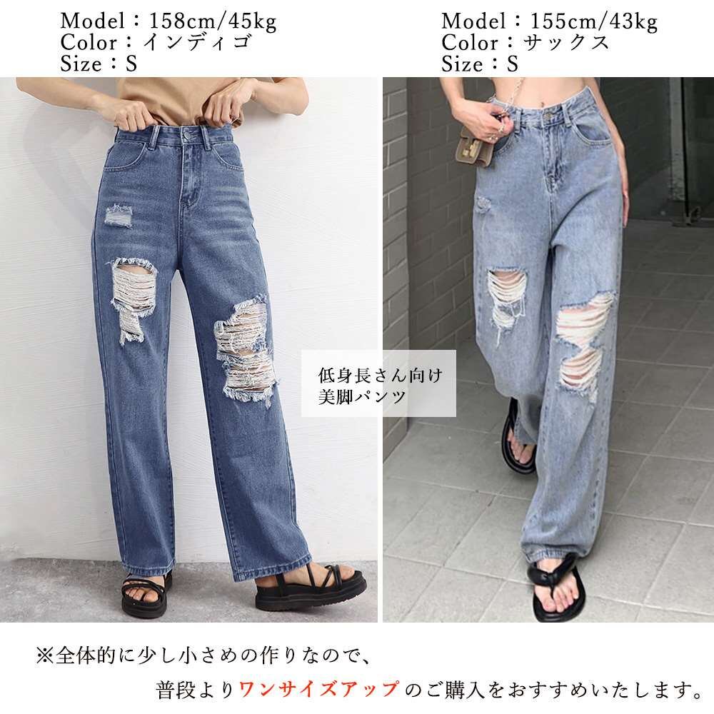 レディースのカッコいいスタイルを演出するクラッシュダメージデニムパンツです