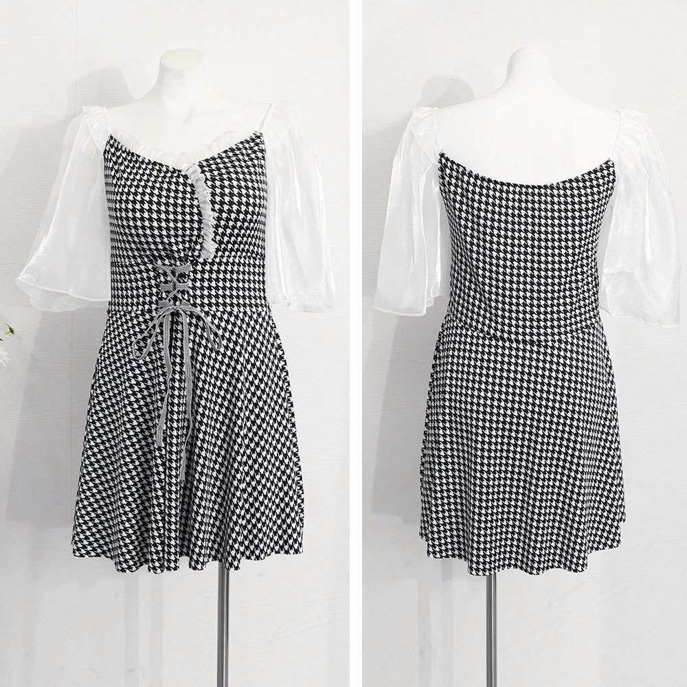 お洒落に体型カバーできる千鳥柄デザインのぽっちゃりワンピース水着