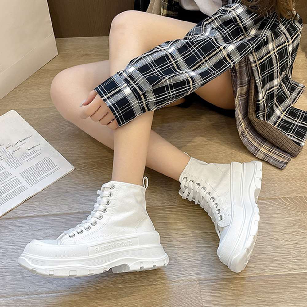 ボリュームのあるシルエットで存在感抜群なキャンバス生地ハイカットスニーカー