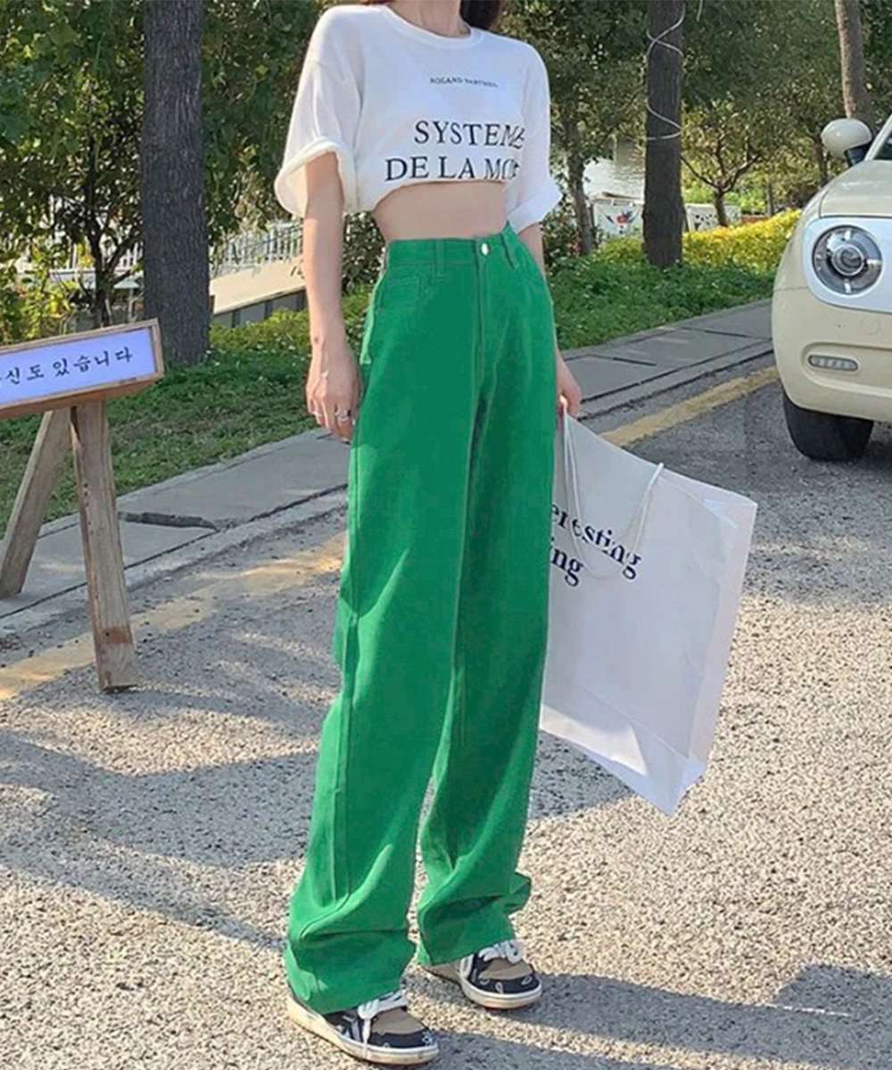 ハイウエスト デニム カラーパンツ 韓国風