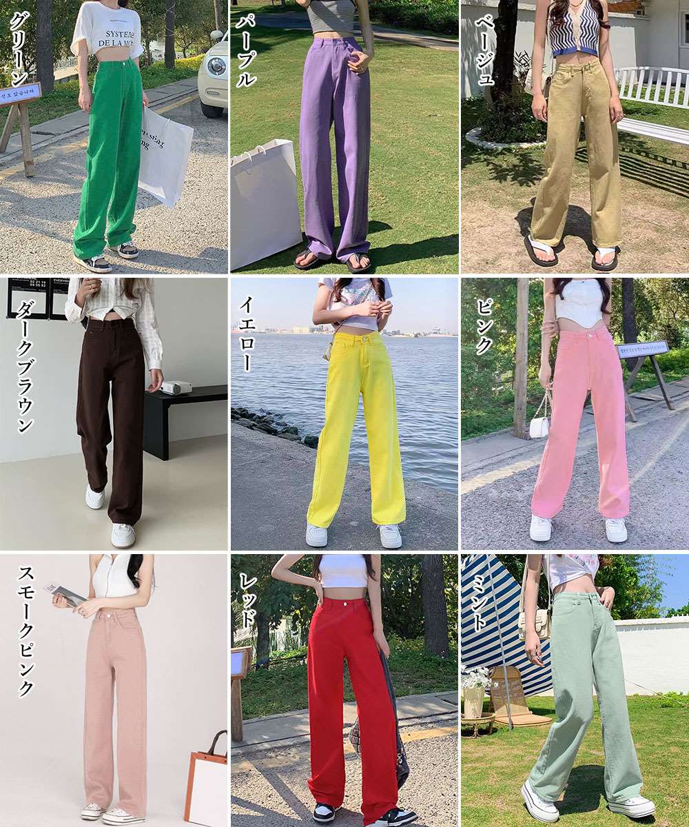 レディース ストレートデニム ゆったり キャンディーカラー ロングパンツ カジュアル ワイドパンツ お洒落ジーパン 脚長