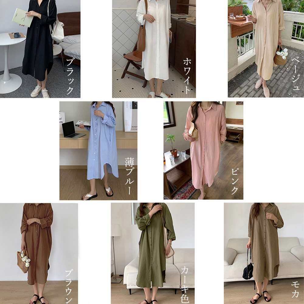 レディース 韓国風 カジュアル ロングワンピース 無地 お洒落 アウター 体型カバー 羽織 前開き ロングシャツ 長袖