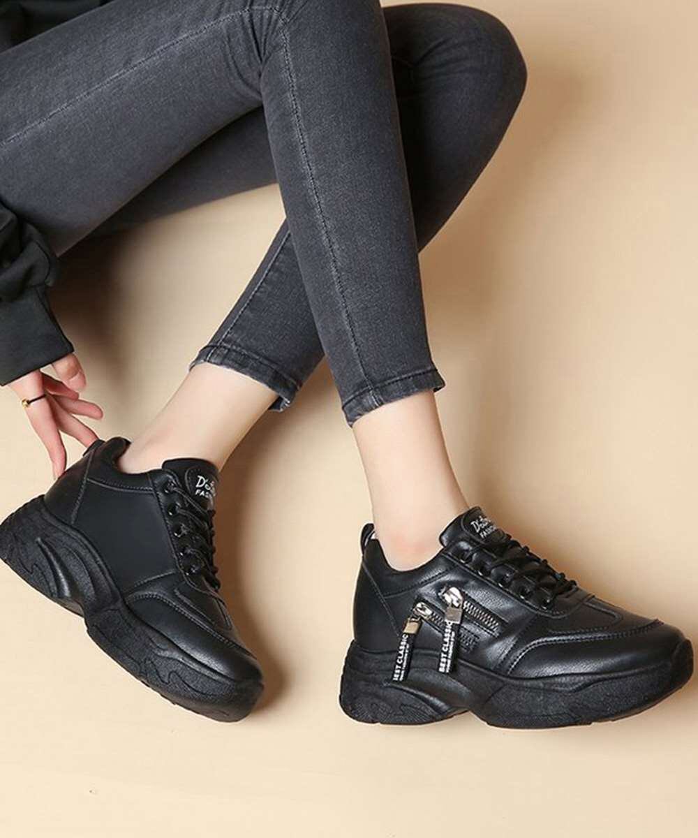 キーワード:厚底スニーカー白黒 歩きやすいシューズ 韓国ファッション靴
