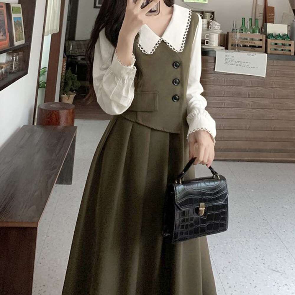 キーワード:レトロワンピ襟付き きれいめワンピ清楚 重ね着風ワンピース