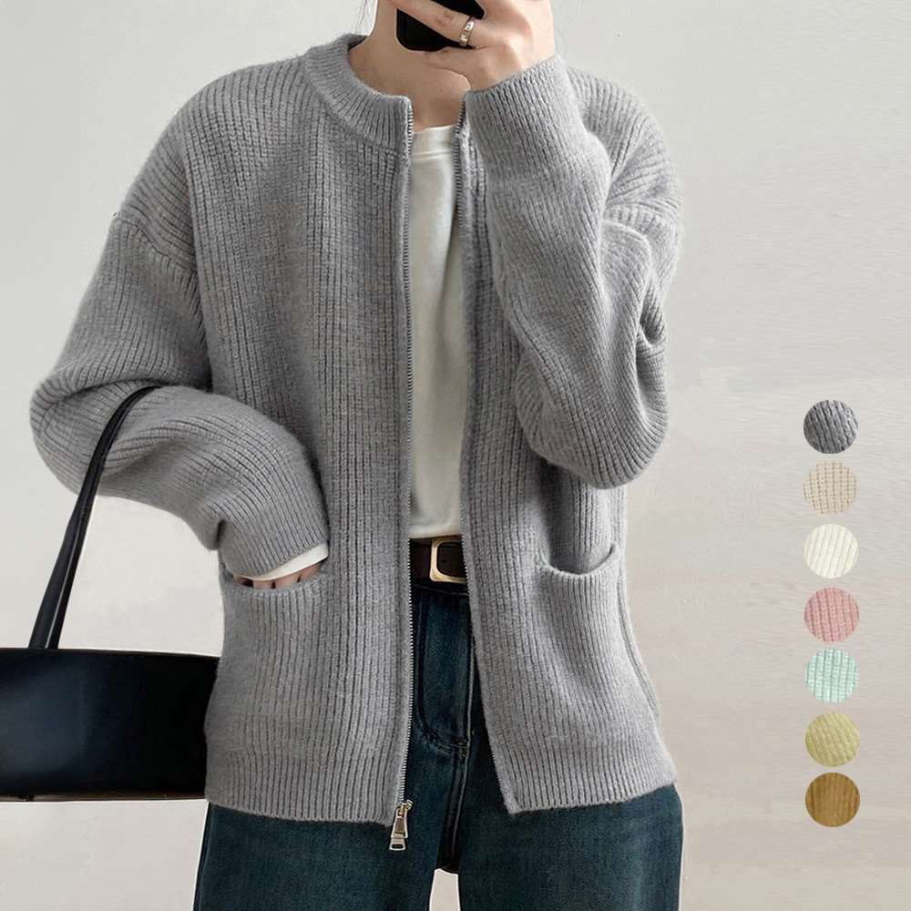 キーワード:リブジップ カーデ ニットアウター大人 ニットウェアレトロ