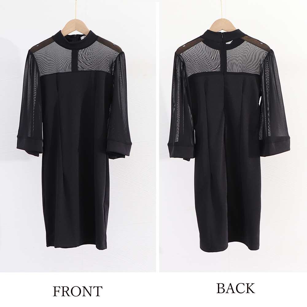 透け感のある薄手の生地との異素材ミックスなので、デザインに変化が出ていてとってもおしゃれのベアトップ風ワンピース