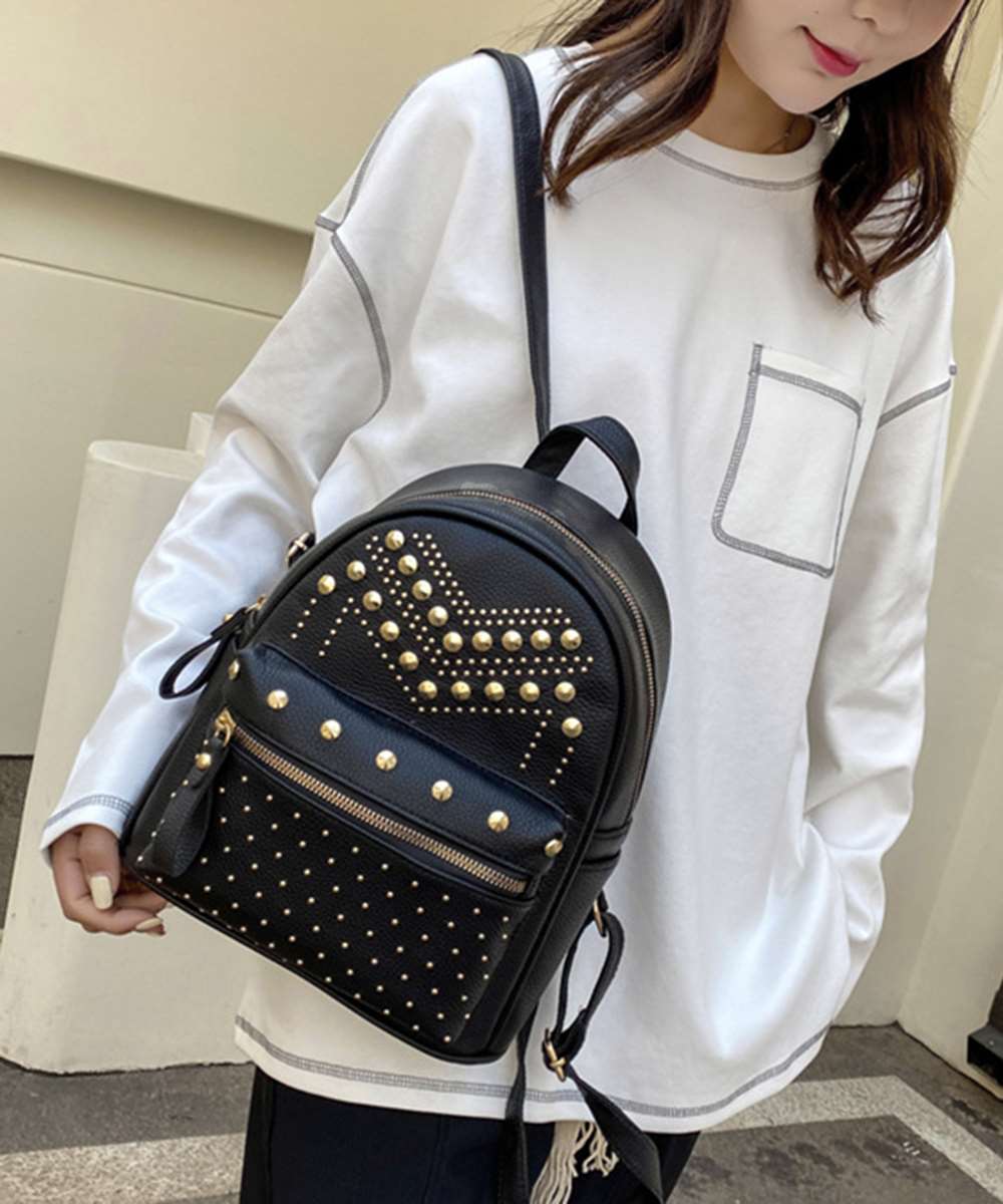 スタッズがアクセントになるレディースフェイクレザーリュック