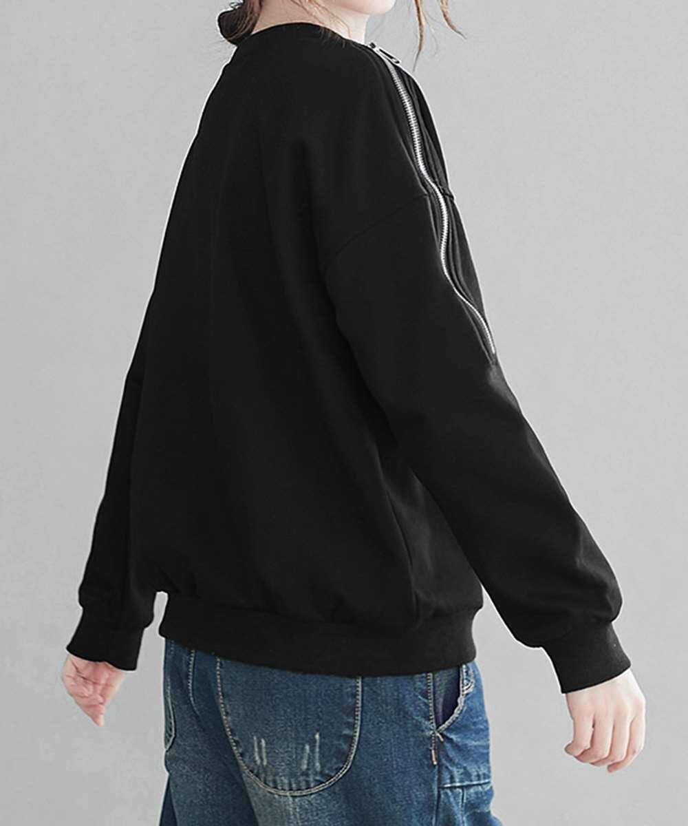 ショルダーファスナー付きで、自由にアレンジを楽しめるトレーナー。