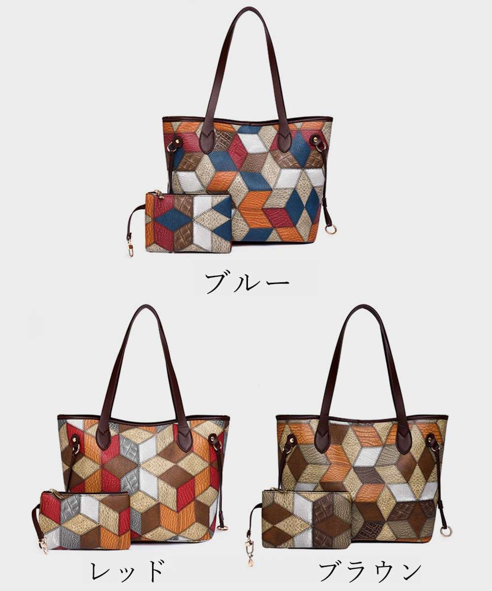 キーワード:大きめトート 合皮 ハンドバッグ 菱格 大人女性カジュアル