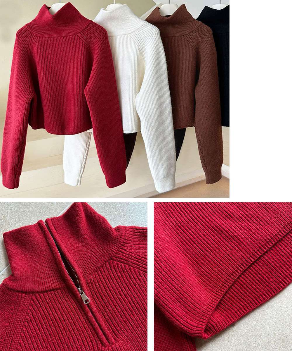ハイネック仕様で首元まで暖かさをキープするショート丈のニットトップスです。