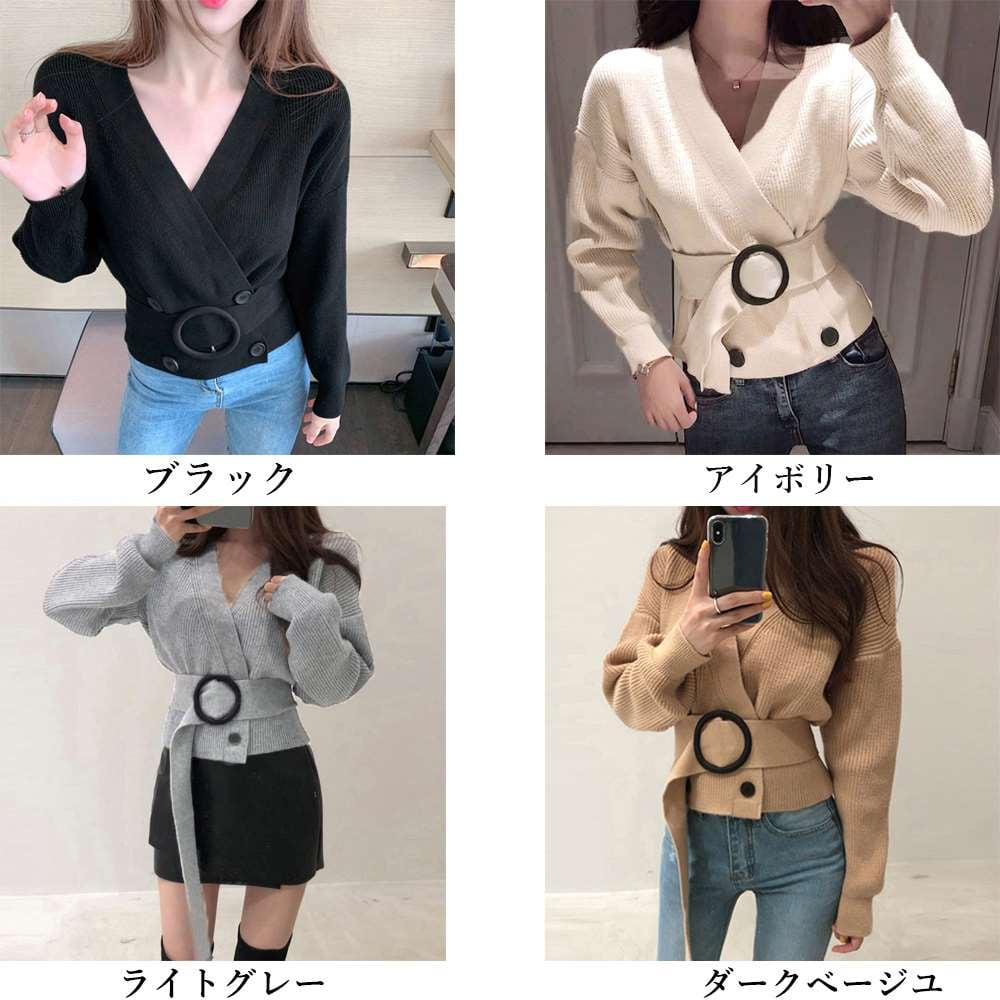 キーワード:ショートニット韓国 ニットソー ベルト付きトップス