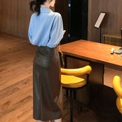 韓国風 フェイクレザー スカート スリット
