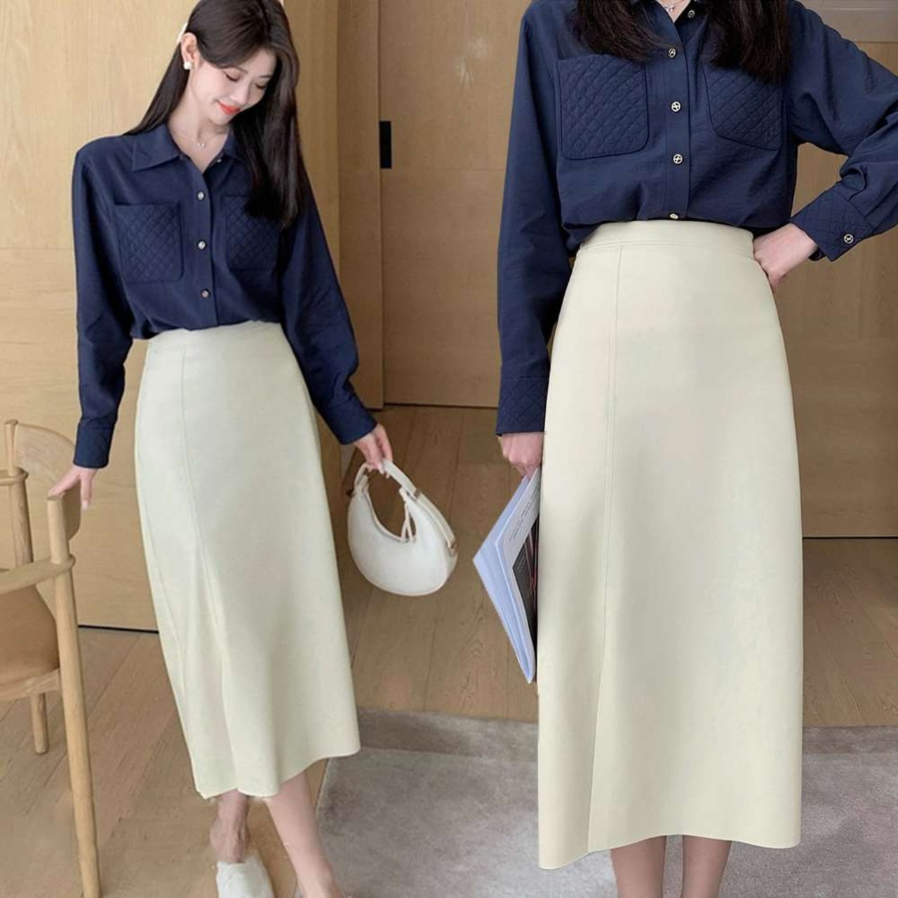 バランスの良いミモレ丈でスリットのセクシー具合を上手く中和、通勤でもオフィスでも使い勝手抜群の1枚