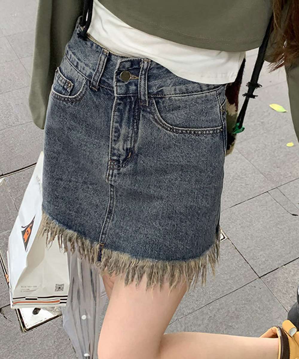 台形のベーシックなシルエットが幅広いコーデにマッチするデニムミニスカート