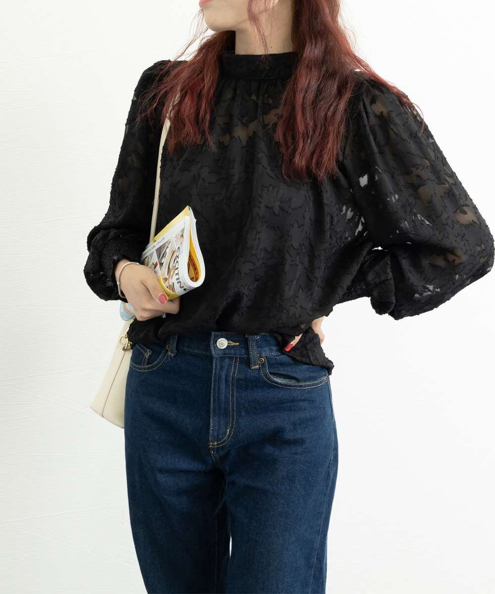 立体感のあるフラワージャガード生地が女性らしさを引き立てる上品なブラウスが新登場