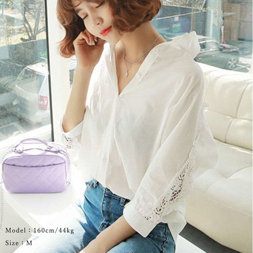 シャツ ブラウス レディース レース切り替え ドルマンスリーブ