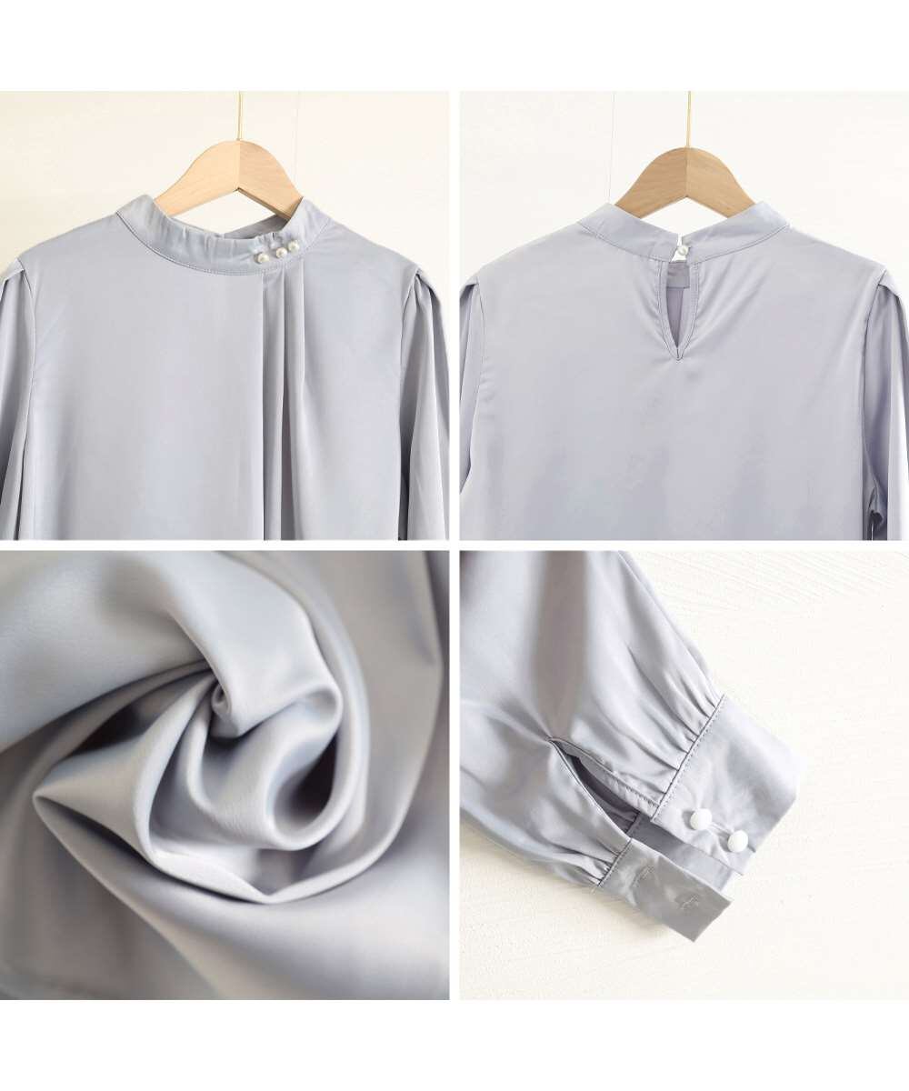 シンプルなコーディネートでもフェイクパールの存在感で上品かつ女性らしいスタイリングにキマるブラウス