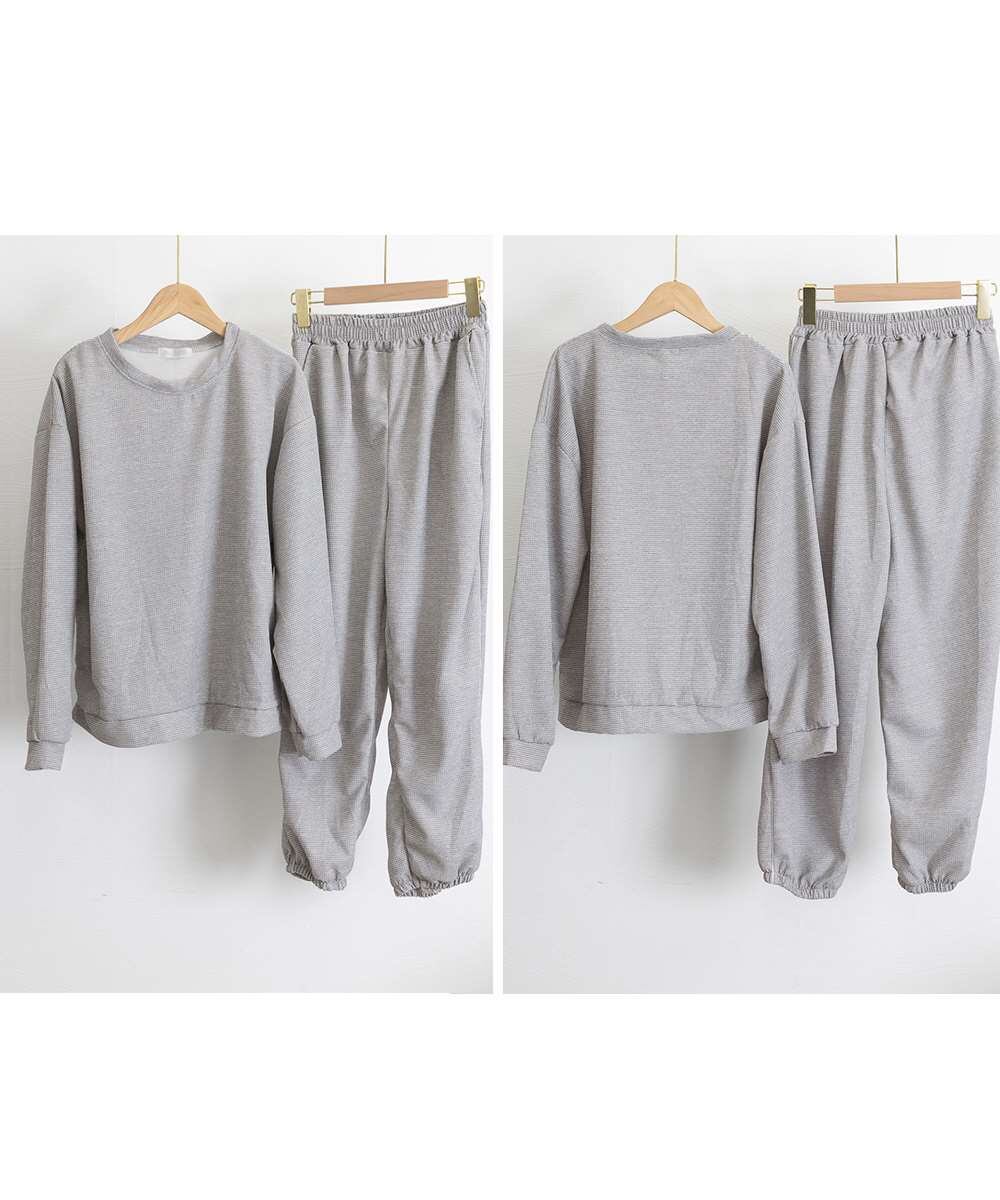 カジュアルから軽いスポーツまで幅広く活躍する、便利な長袖スウェットセットアップ