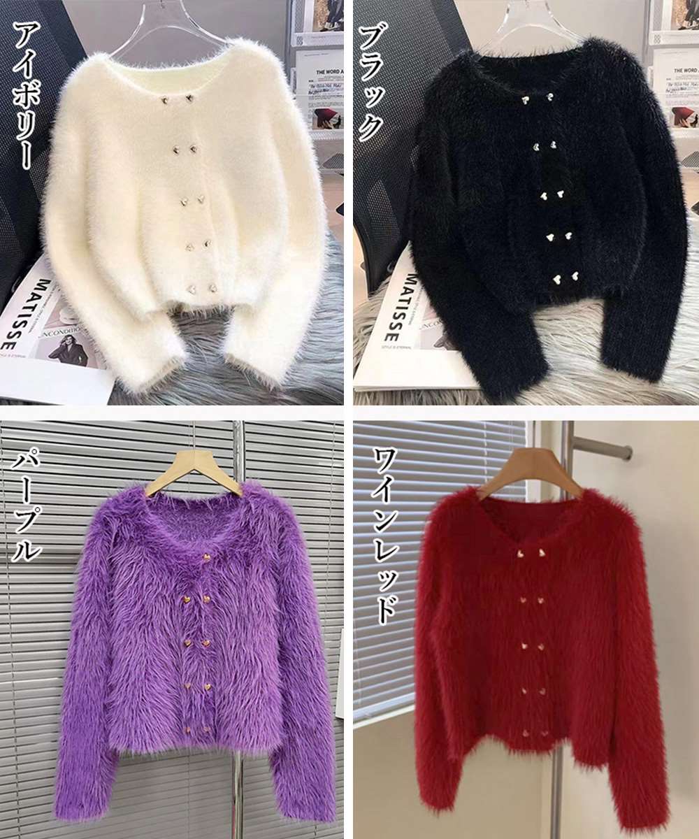 キーワード:ファートップス モヘアカーディガン ふわふわ服あったか
