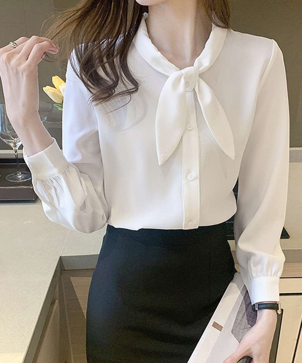キーワード:女子ボウタイシャツ 韓国ファッション服 オフィスカジュアル