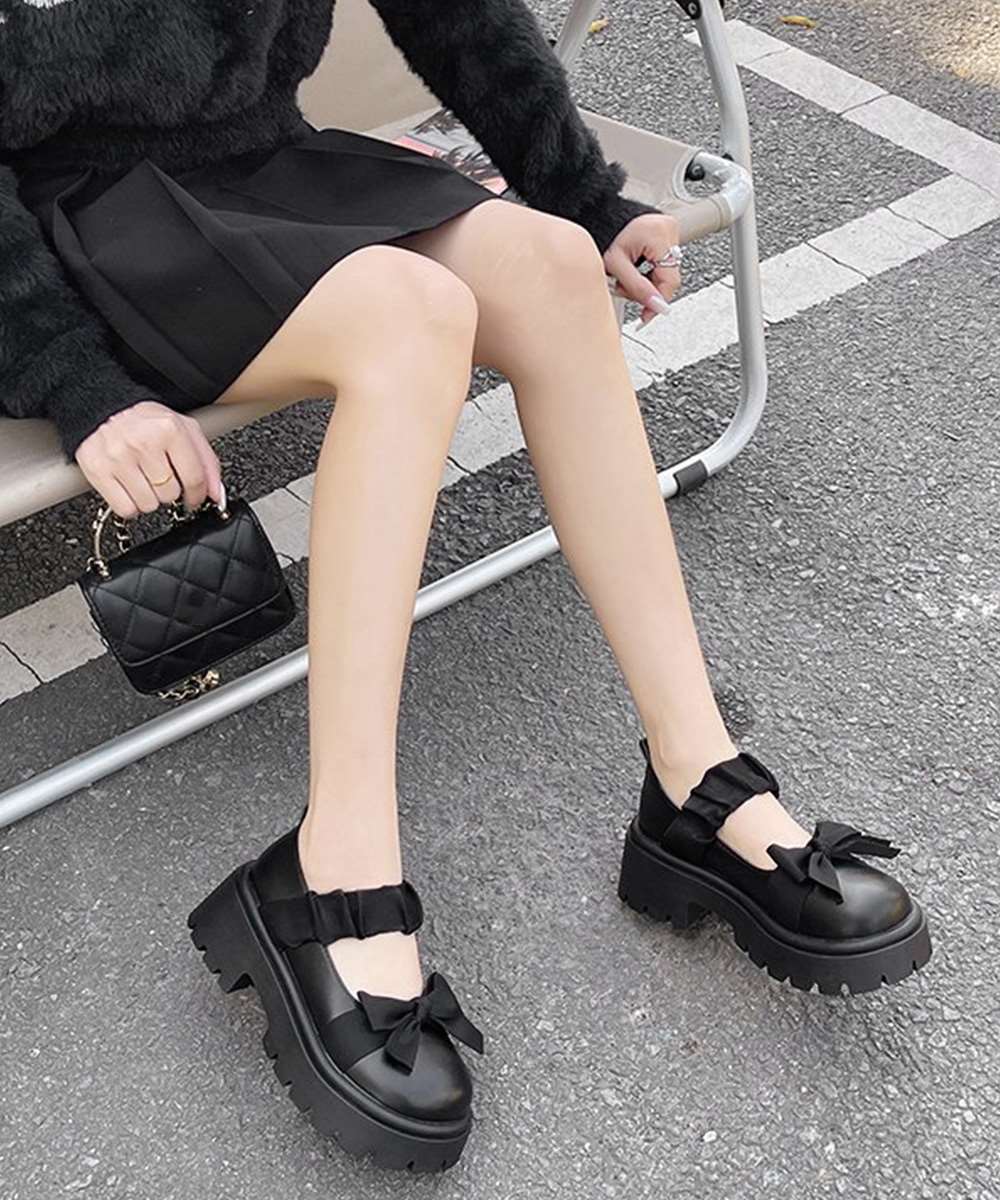 リボン 厚底 ローファー パンプス ラウンドトゥ