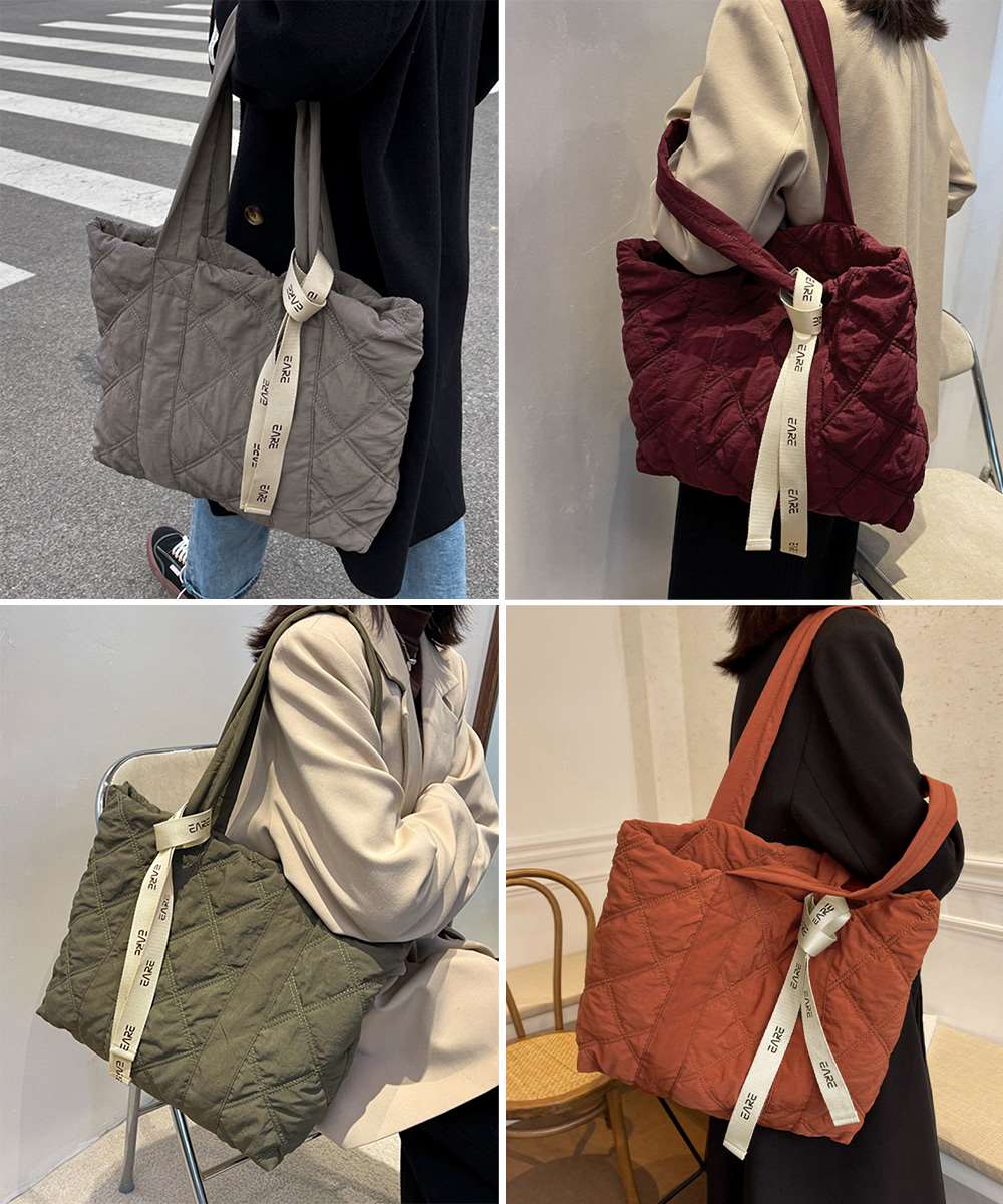 柔らかい質感が特徴の軽量キルティングトートバッグ