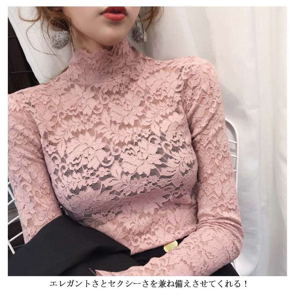 総レース カットソー レディース 花柄 シースルー ハイネック トップス エレガント セクシー