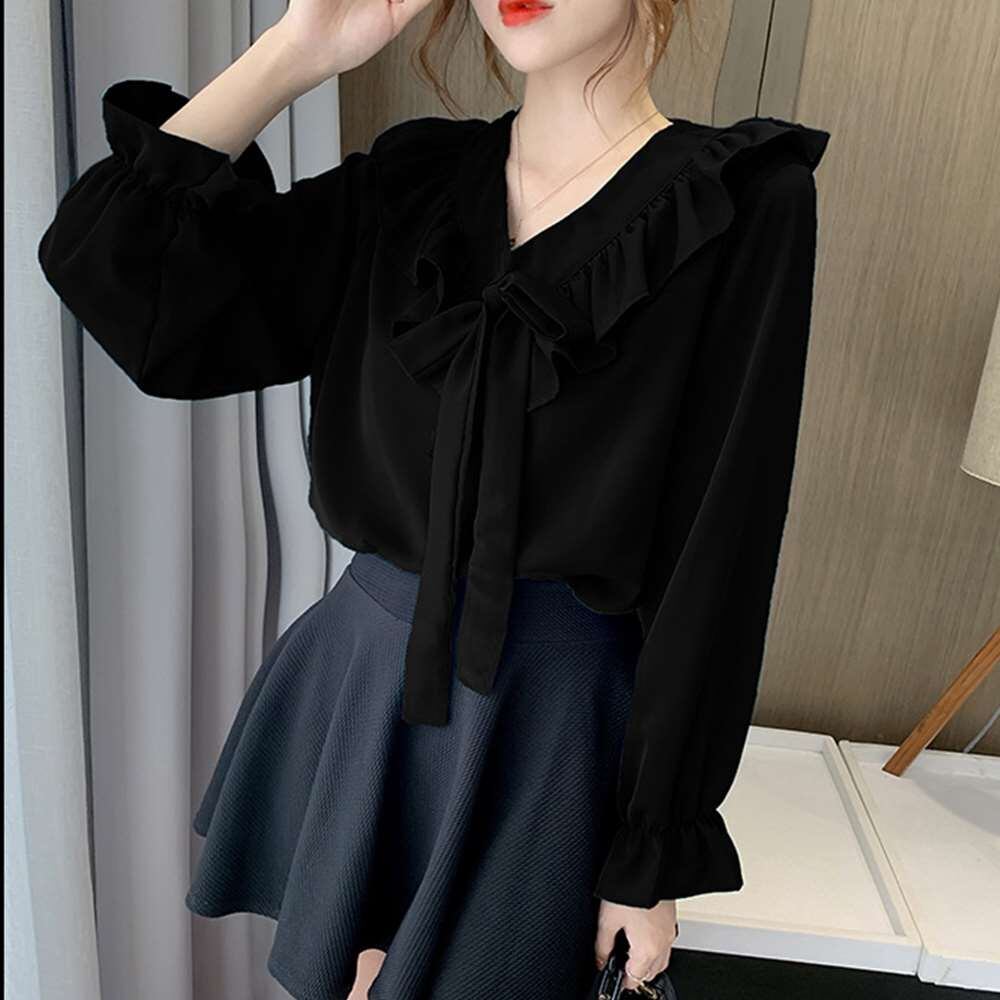 キーワード:可愛いリボンシャツ リボンタイブラウス 韓国とろみシャツ