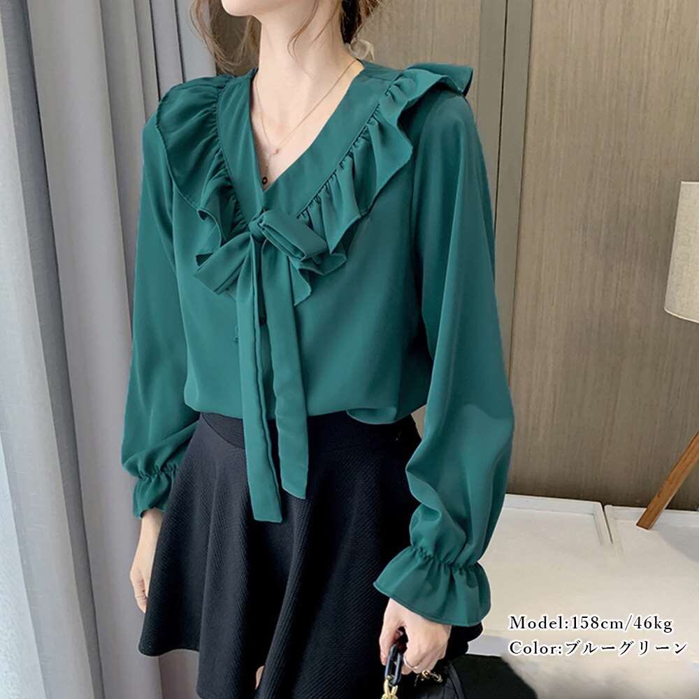 フリル襟 ボウタイ ブラウス 大人 通勤 OL