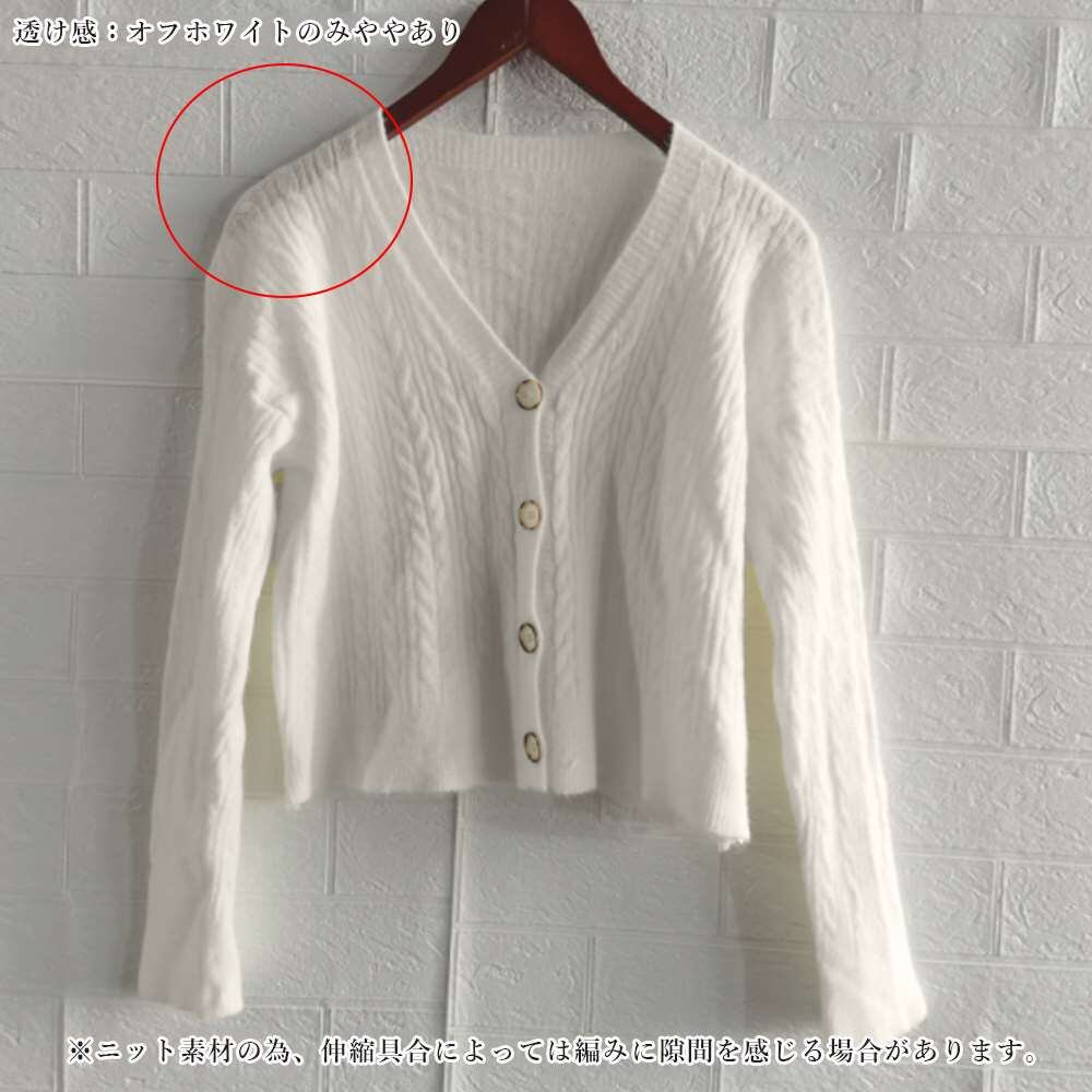 ケーブル編みが旬のシルエットに見せてくれるショート丈のニットカーディガン