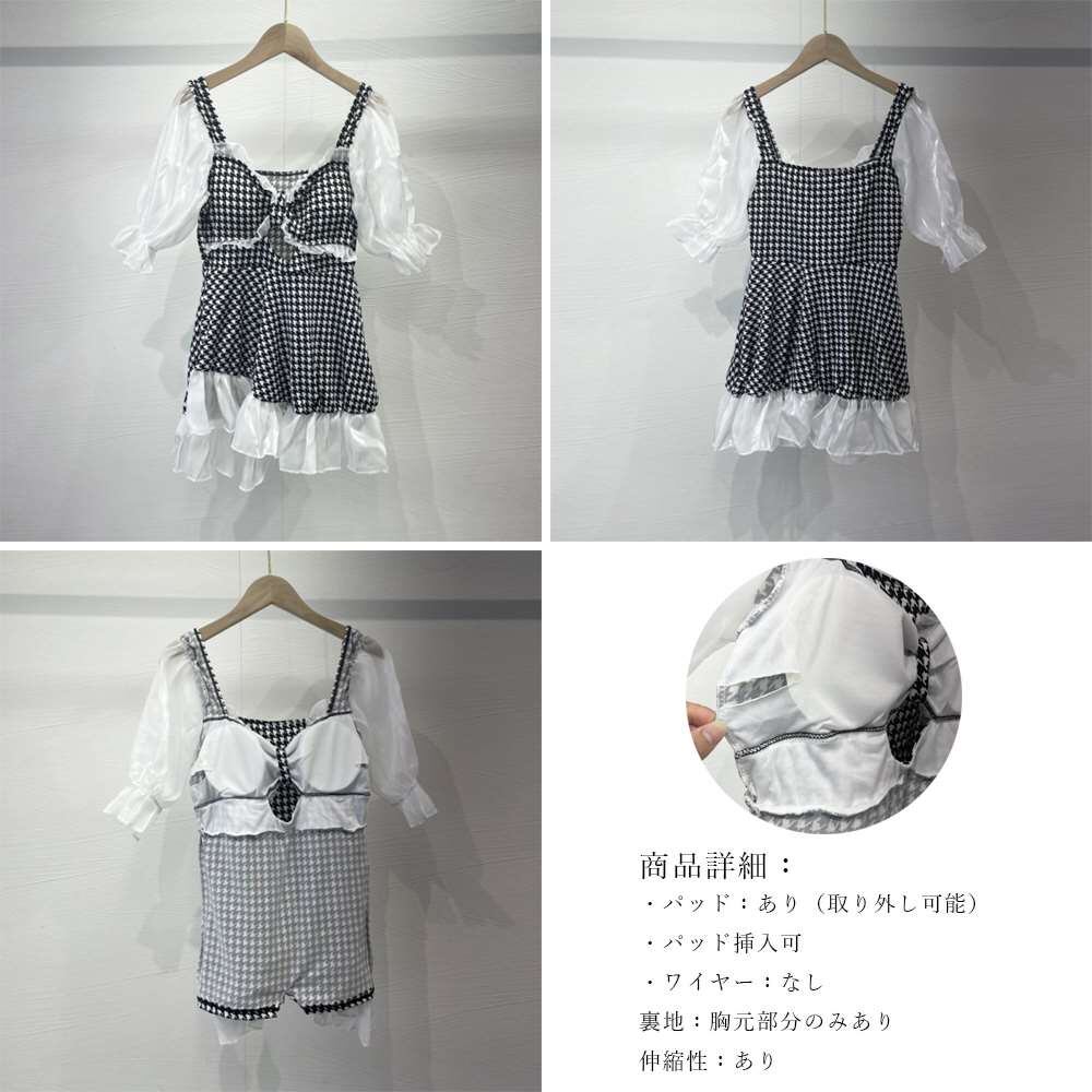 ワンピース水着 千鳥柄 韓国 スイムウェア