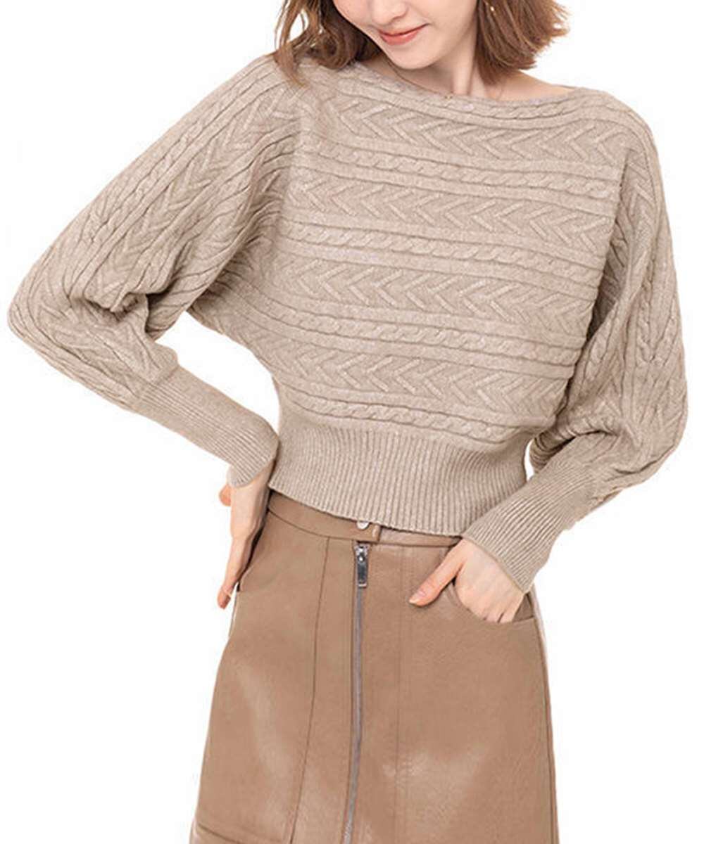 レディース ケーブル編み ニットプルオーバー ショート丈 着やせ ニットセーター 大人カジュアル 長袖ニットソー 秋冬