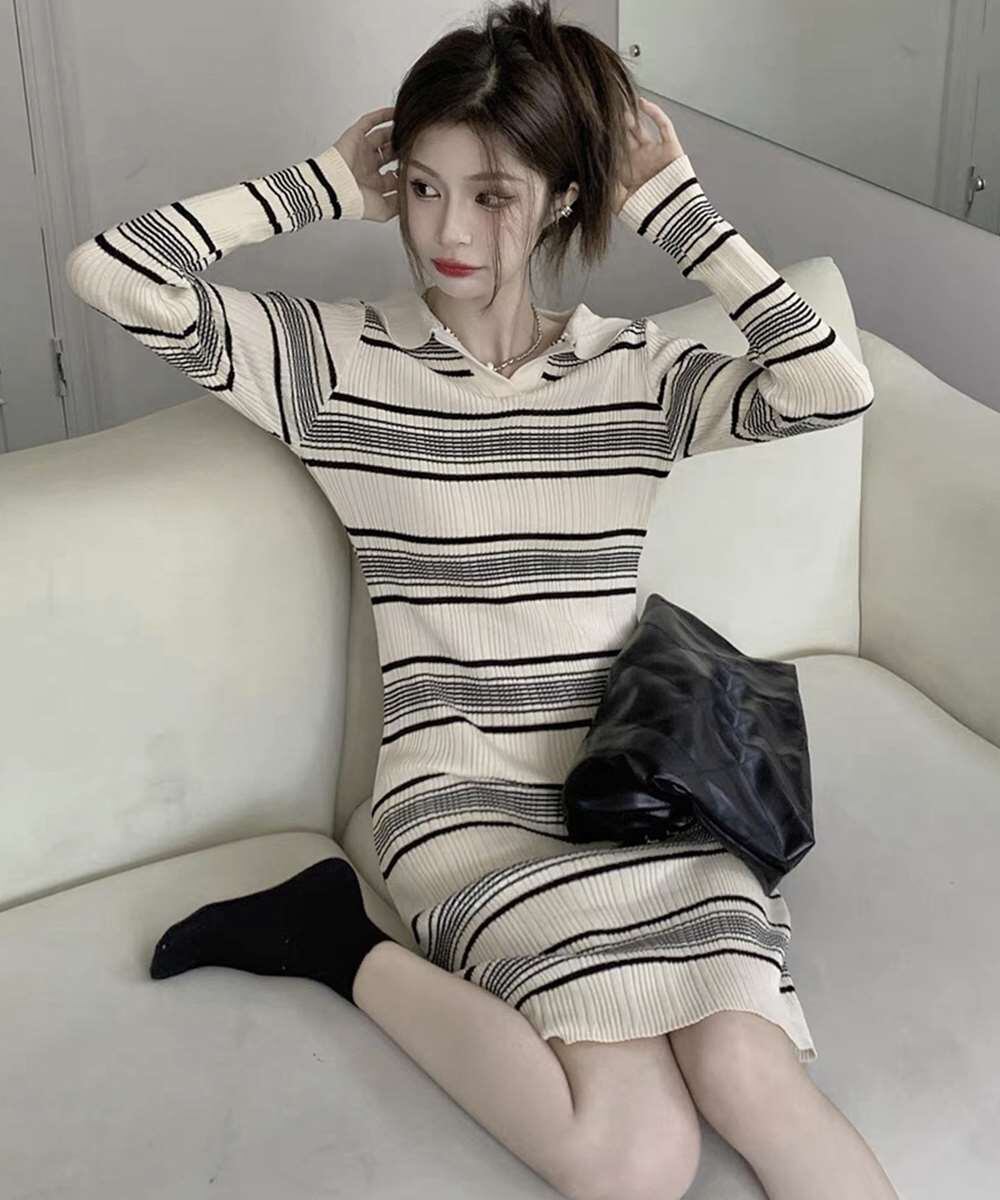 トレンドのポロデザインとボーダー柄がカジュアルコーデにぴったりなワンピース