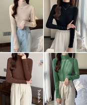 キーワード:無地タイトトップス ニットソー通勤通学 韓国風トップス大人