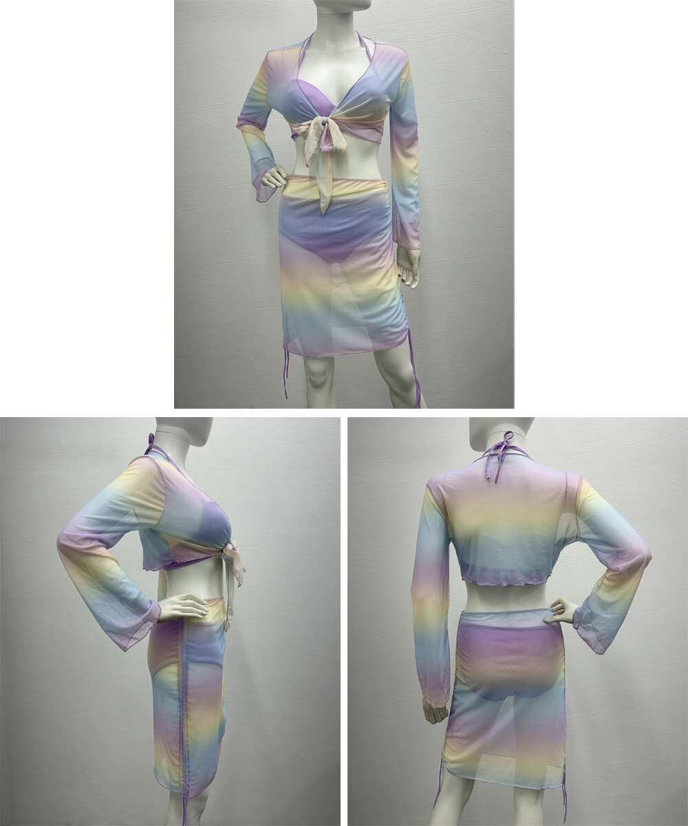 4WAYの着こなしが楽しめる、大人フェミニンなカラフル水着4点セット